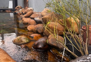 Na parte externa da estética, encontramos um encantador espaço aberto, ideal para relaxar e desfrutar de momentos agradáveis. Com cadeiras e mesas dispostas de maneira aconchegante, os visitantes podem sentar-se e apreciar uma boa música enquanto desfrutam da brisa suave. O ambiente é enriquecido por um lago sereno que reflete a luz do sol e uma piscina cristalina, que convida a um mergulho refrescante. Essas características tornam o local perfeito para quem busca tranquilidade e bem-estar. Cada detalhe foi pensado para proporcionar uma experiência única, onde a harmonia entre natureza e conforto se destaca, criando uma atmosfera ideal para momentos de descontracção e convivência.