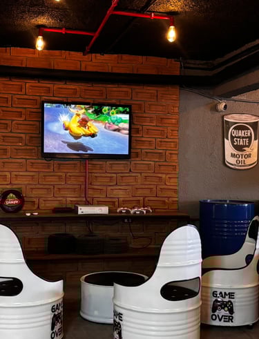 Temos um espaço único, localizado na garagem, que reúne jogos e um bar estiloso, perfeito para transformar a espera em um momento leve e divertido. Equipado com videogames clássicos, os visitantes podem relembrar grandes momentos ou se aventurar em partidas animadas.Para quem ama futebol, há jogos eletrizantes que promovem uma competição saudável e cheia de risadas. Também disponibilizamos uma máquina de chope sempre gelada para brindar a experiência.E para quem prefere um passatempo mais tradicional, nossa mesa de bilhar é o convite ideal para relaxar e descontrair.